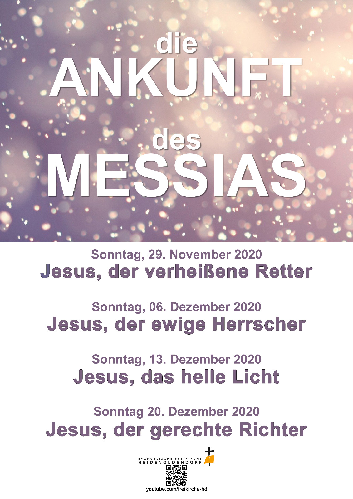 Wir möchten Sie alle dazu einladen, in dieser Adventszeit mit dabei zu sein. Ob present vor Ort, oder via Radio- oder Youtubestream. Nachfolgend die geplanten Veranstaltungen im Überblick: