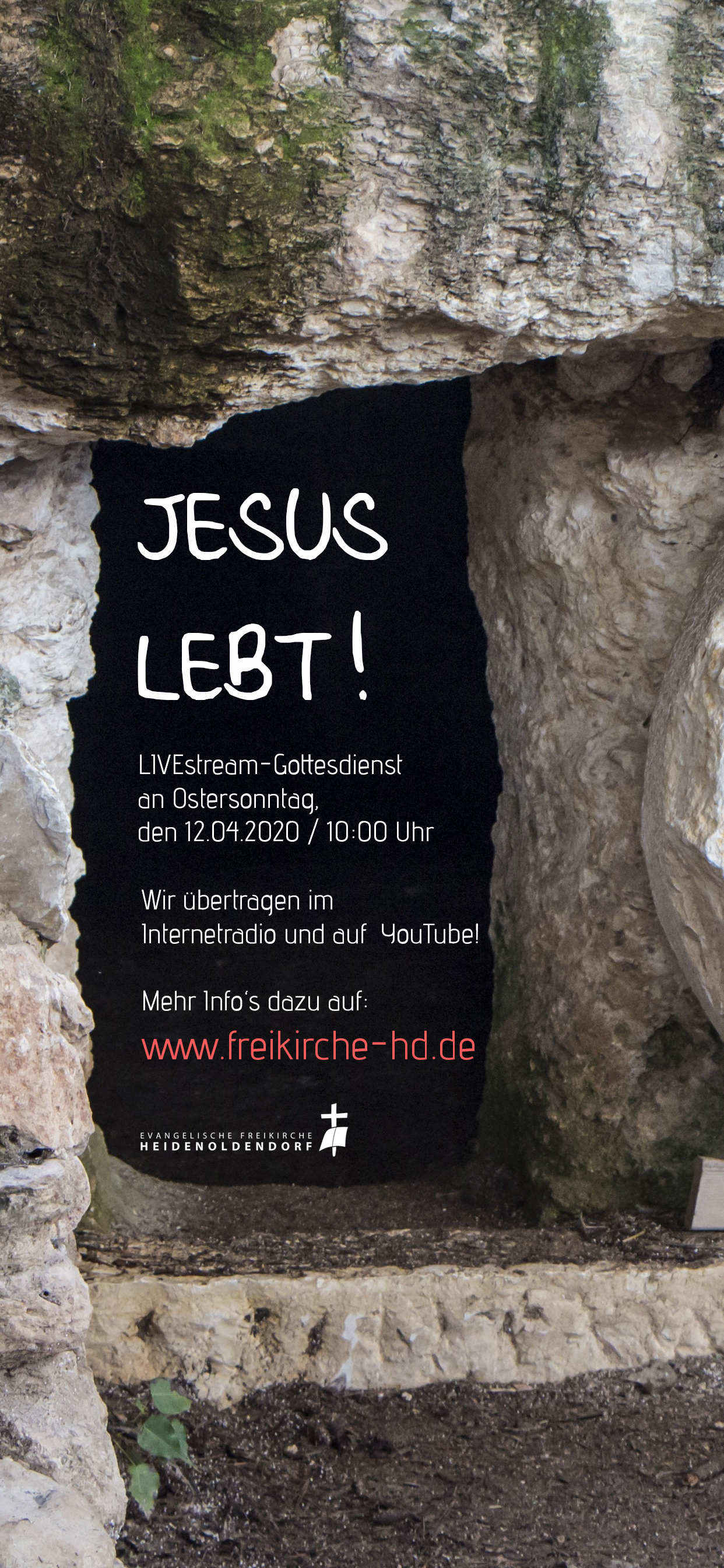 JESUS LEBT! - Eine tolle Botschaft - Und die wollen wir mit euch gemeinsam feiern! Seid dabei! Verfolgen und dabeisein können Sie diesen Gottesdienst via Radio- oder Youtubestream. Wie, erfahren Sie hier.